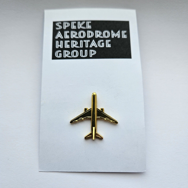 Metal gold effect airliner lapel pin / pin badge measures 3cm from nose to tail.